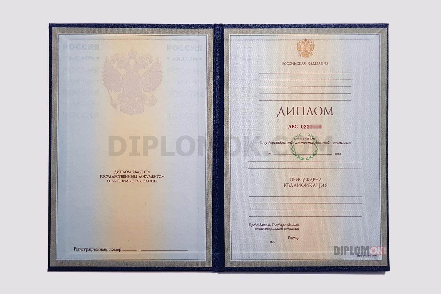 Покупая диплом специалиста, вы получаете заполненный документ, состоящий из твердой обложки синего цвета, непосредственно бланка диплома и приложения к нему. При покупке Вы можете выбрать любой ВУЗ Москвы и других городов России и указать любую подходящую Вам специальность (если она есть в учебном заведении). То, как будет выглядеть Ваш диплом, зависит от предполагаемого года выдачи диплома специалиста. Образцы, в зависимости от периода, представлены ниже! Для подробного изучения дипломов по годам кликните по соотвествующим ссылкам!
