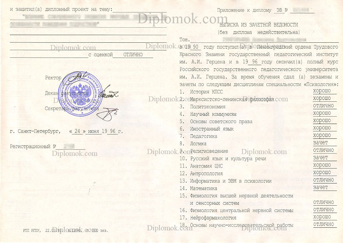 Диплом о высшем образовании СССР — диплом старого образца до 1996 года